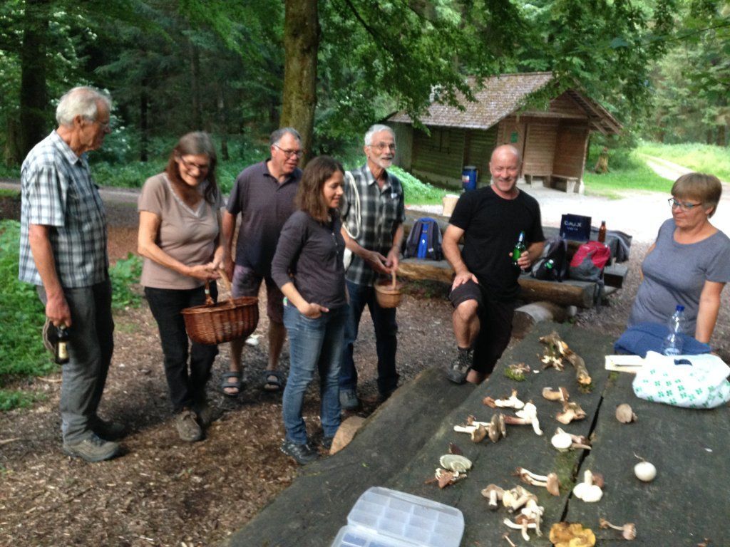Je 5 Vereinsmitglieder und Kursteilnehmende, total 8 Personen (Nachrechnen unnötig, stimmt so!) bestimmten 41 Arten: 25 Speisepilze, 11 «kein Speisepilz» und 5 Giftpilze.